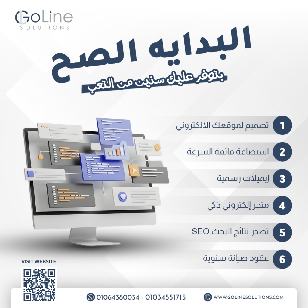 في GoLine Solutions، إحنا مش بس بنصمم مواقع، إحنا بنبني لبيزنس بتاعك كيان رقمي متكامل.